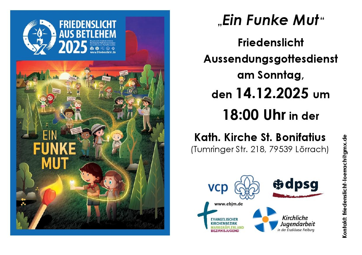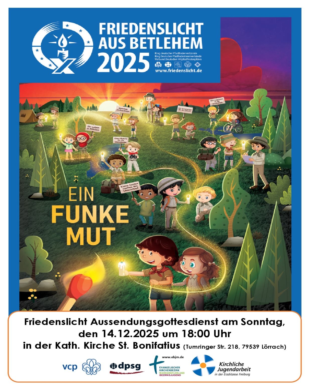 friedenslicht plakat 2025 Ein Funke MutEin Funke Mut bedeutet, für den Frieden einzustehen, auch wenn der Weg dorthin schwer ist.
